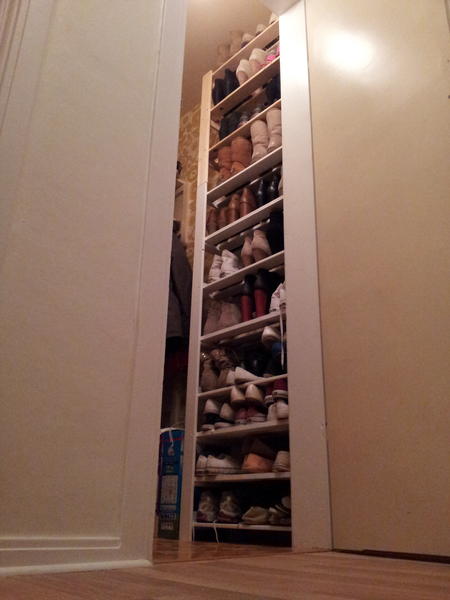 Her ser du løsningen på en praktisk skohylle som krever lite areal, i tillegg til å være elegant. Praktisk uttrekkbar skohylle med skooppbevaring i to dybder. Tips: skohylle av kasser - Bruk gamle fruktkasser til å lage en praktisk og sjarmerende skohylle i gangen.